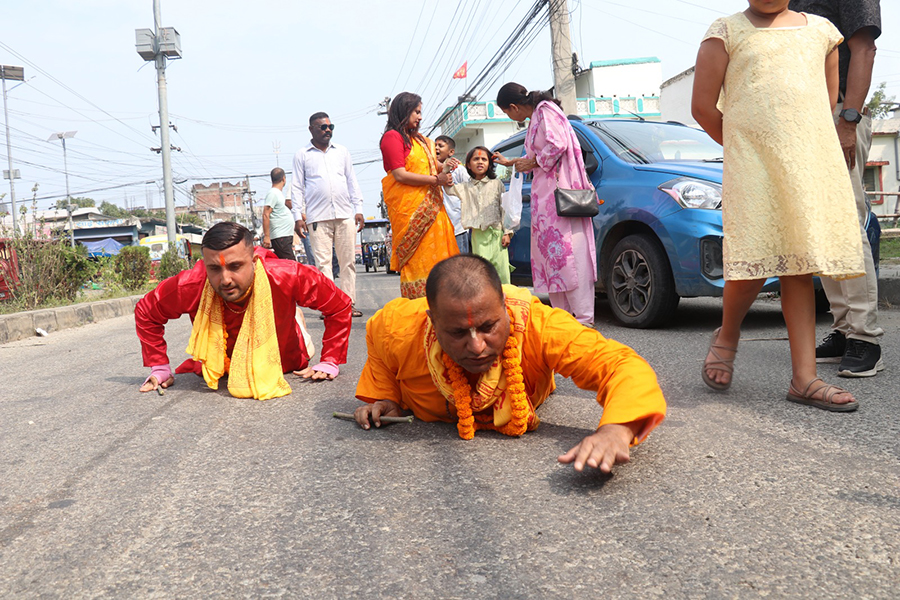 विराटनगर महानगरपालिका–३ ठूलो मिल चोकमा रहेको शिव पाञ्चायन मन्दिरमा पूजा गर्दै उनले सुरु गरेको दण्ड प्रणाम यात्रा सिंघिया खोलामा राखिएको पूजा स्थलसम्ममा पुगेर समापन हुनेछ ।